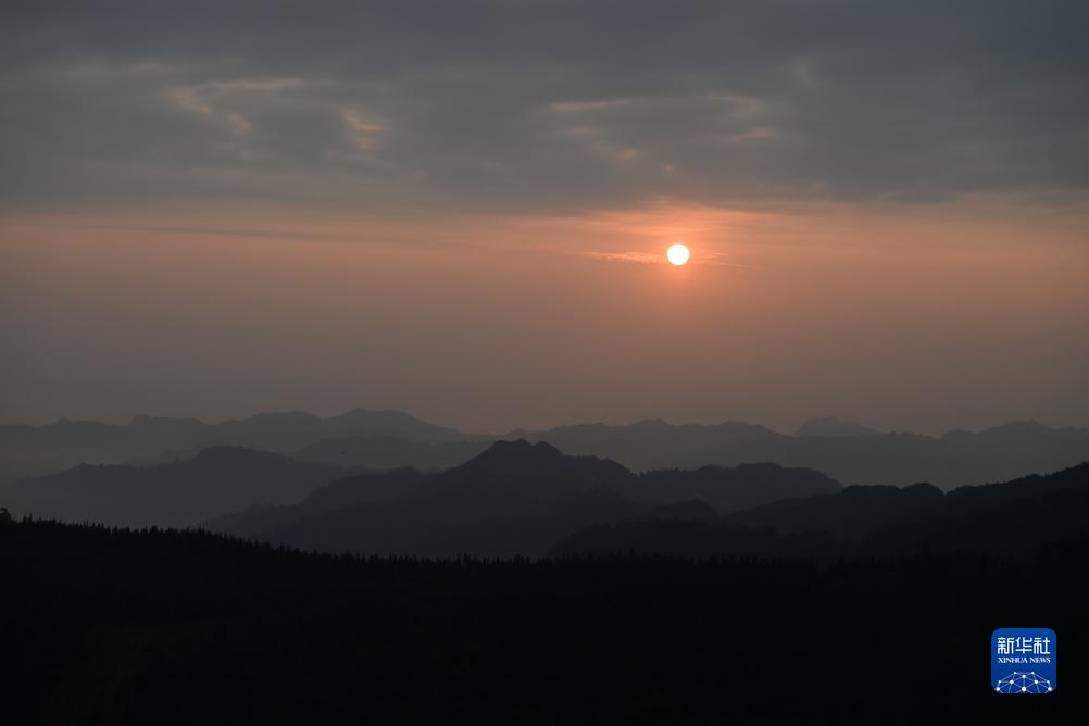 當日清晨,廣西樂(lè )業(yè)縣紅日初升,晨霧中的群山充滿(mǎn)詩(shī)情畫(huà)意。