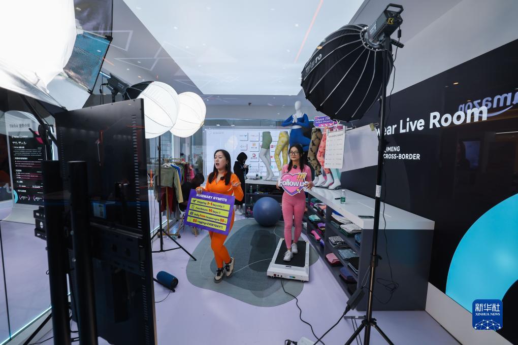 11月23日,在第二屆全球數字貿易博覽會(huì )的絲路電商館,跨境電商進(jìn)行直播銷(xiāo)售。