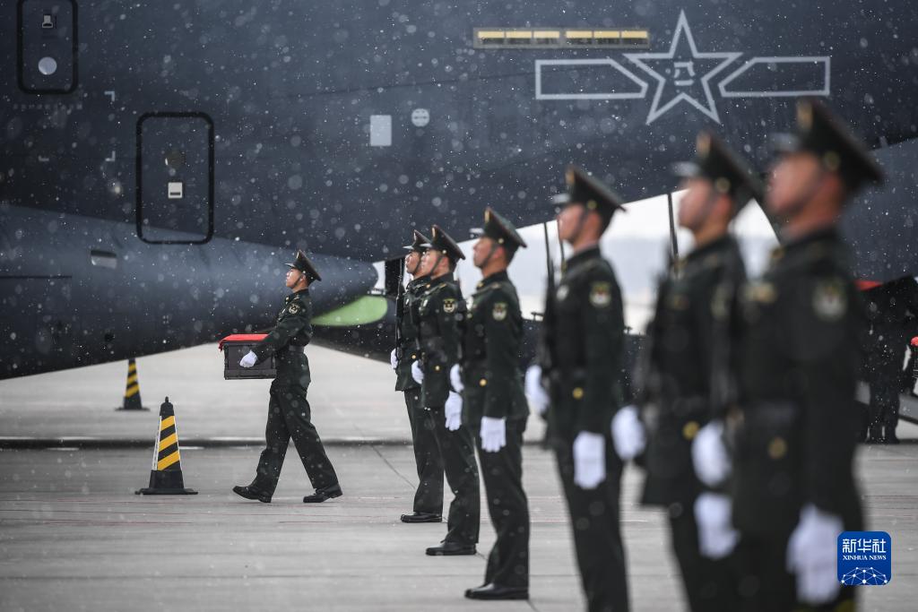 當日,第十批在韓中國人民志愿軍烈士遺骸由我空軍專(zhuān)機護送從韓國接回遼寧沈陽(yáng),25位志愿軍烈士遺骸及相關(guān)遺物回到祖國。