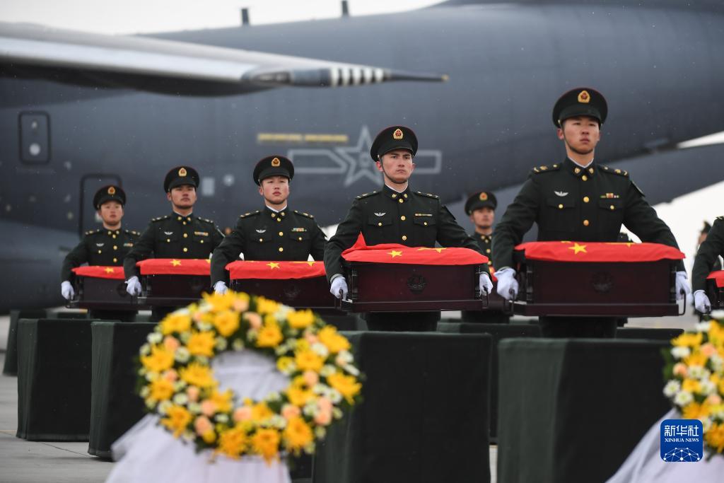 當日,第十批在韓中國人民志愿軍烈士遺骸由我空軍專(zhuān)機護送從韓國接回遼寧沈陽(yáng),25位志愿軍烈士遺骸及相關(guān)遺物回到祖國。