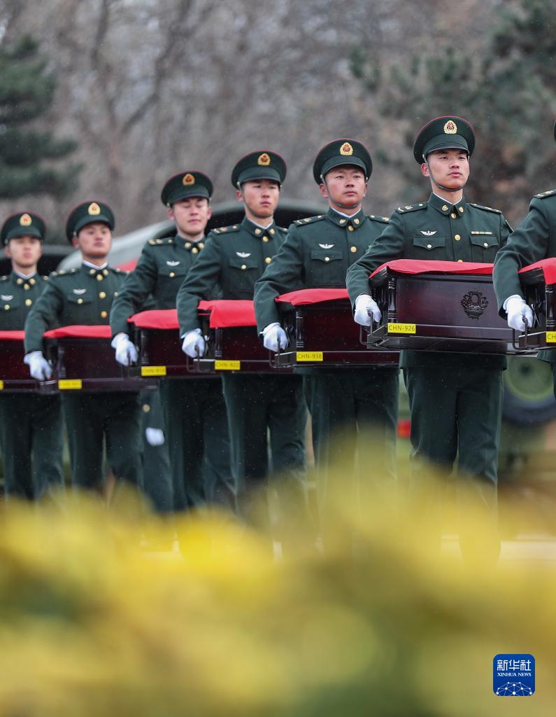 11月23日,志愿軍烈士遺骸抵達沈陽(yáng)抗美援朝烈士陵園。