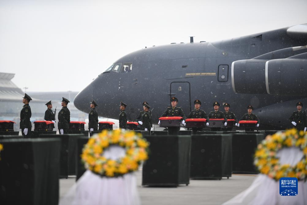 當日,第十批在韓中國人民志愿軍烈士遺骸由我空軍專(zhuān)機護送從韓國接回遼寧沈陽(yáng),25位志愿軍烈士遺骸及相關(guān)遺物回到祖國。