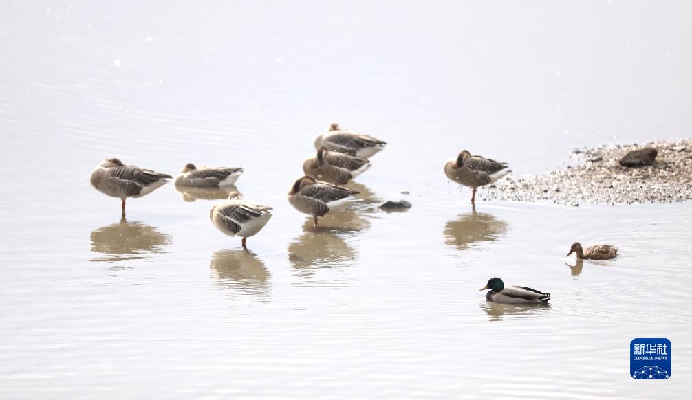 11月23日,候鳥(niǎo)在沈陽(yáng)渾河灘地旁棲息。