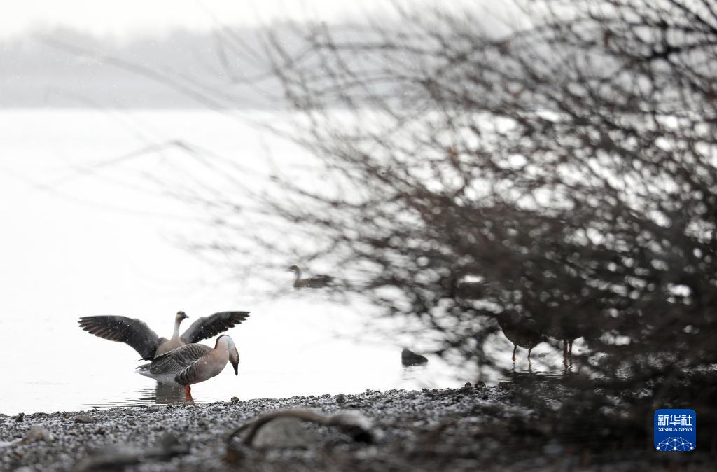 11月23日,候鳥(niǎo)在沈陽(yáng)渾河灘地上棲息。