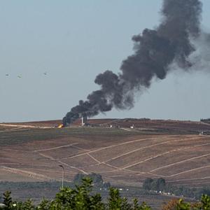 這張11月23日從黎以邊境以色列一側拍攝的照片顯示,黎巴嫩南部地區遭以軍襲擊后升起濃煙。