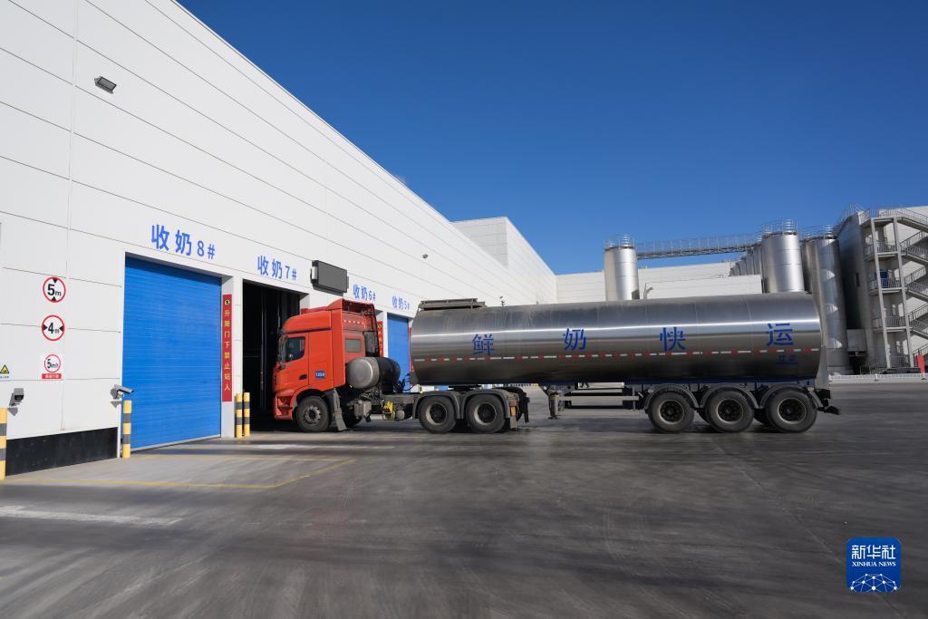 11月23日,在呼和浩特市伊利現代智慧健康谷液態(tài)奶全球智造標桿基地,一輛奶罐車(chē)駛入收奶車(chē)間。