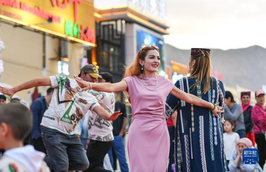 人們在新疆塔什庫爾干塔吉克自治縣跳舞(8月31日攝)。
