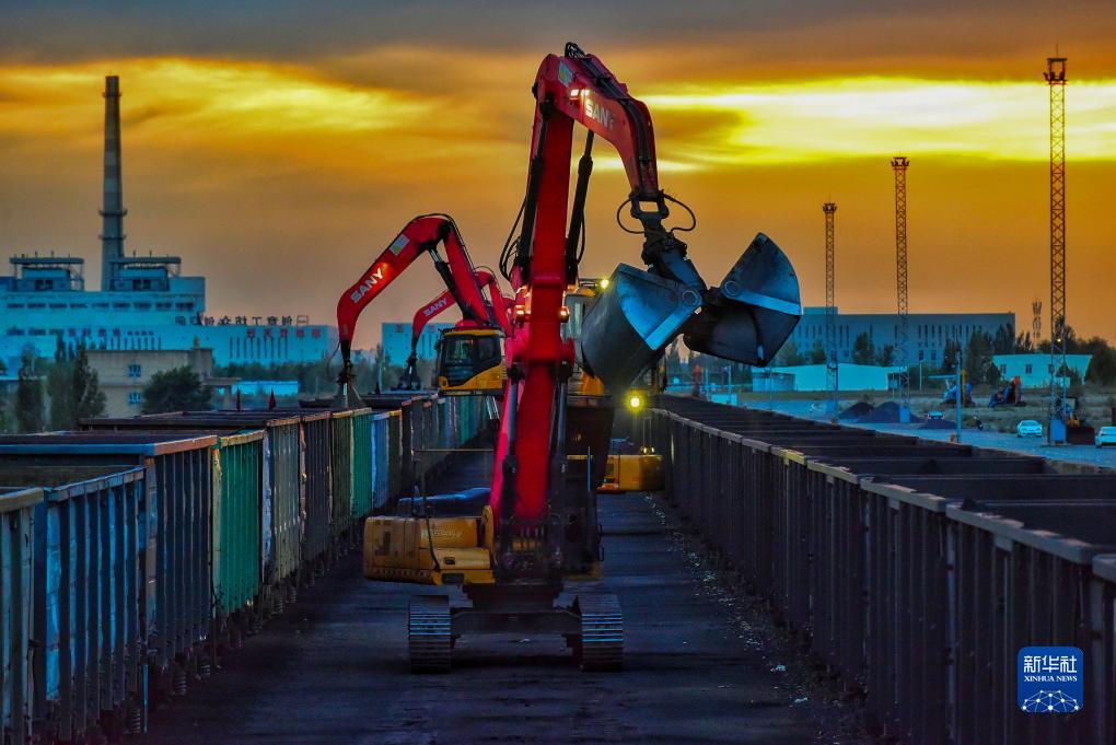 新疆霍爾果斯站換裝庫換十線(xiàn)抓料機對散堆裝貨物換裝作業(yè)(9月6日攝)。目前,經(jīng)霍爾果斯鐵路口岸通行中歐(中亞)班列數量累計超過(guò)3.2萬(wàn)列,班列開(kāi)行線(xiàn)路累計達80條,輻射境外18個(gè)國家、45個(gè)城市和地區。