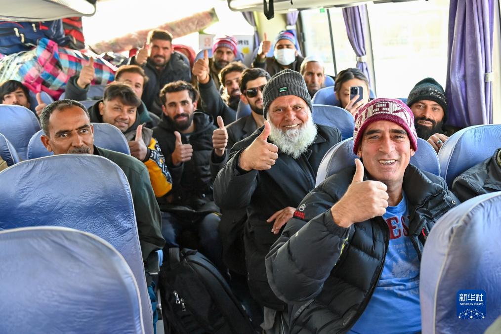 新疆紅其拉甫口岸,出境旅客在國際道路旅客班車(chē)上等待發(fā)車(chē)(11月6日攝)。
