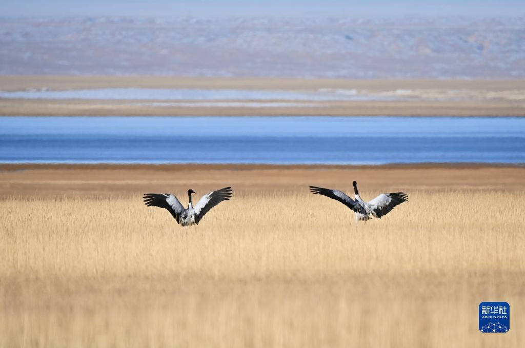 阿爾金山國家級自然保護區的黑頸鶴(10月18日攝)。