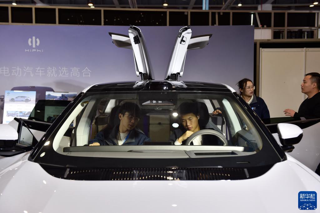 11月24日,在第二屆全球數字貿易博覽會(huì )數智出行館,觀(guān)眾體驗高合電動(dòng)汽車(chē)。