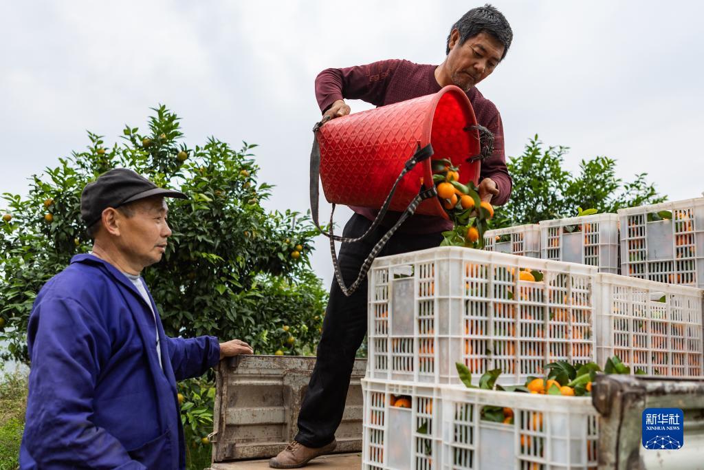 11月24日,在重慶市開(kāi)州區竹溪鎮大海村的一個(gè)柑橘種植基地,村民在將采摘的砂糖橘裝箱。