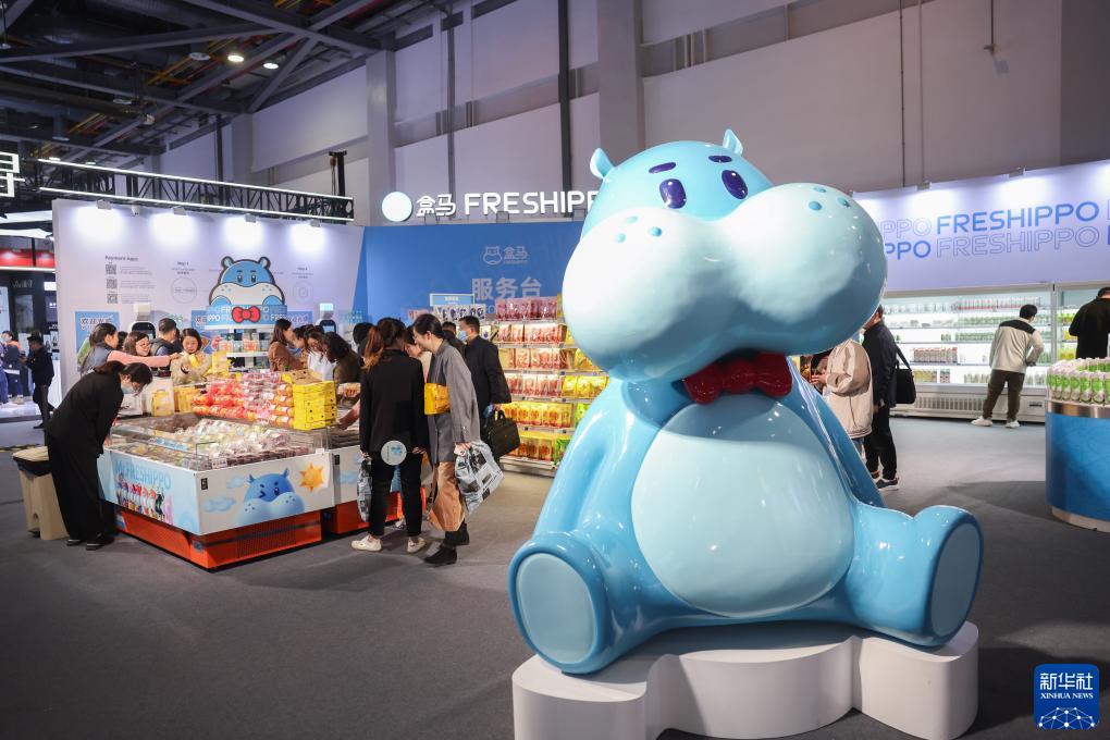 這是第二屆全球數字貿易博覽會(huì )的絲路電商館的商品銷(xiāo)售展臺(11月24日攝)。