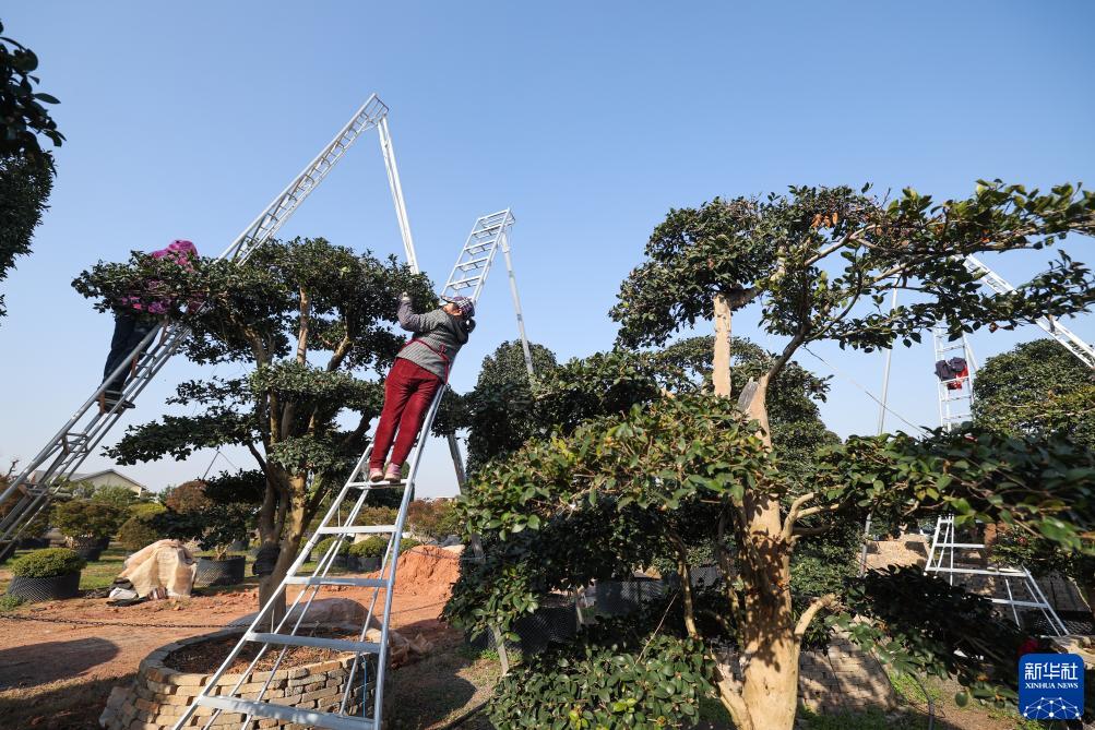 11月25日,在金華市金東區澧浦花木城的苗圃?xún)?,工作人員在修剪茶樹(shù)。