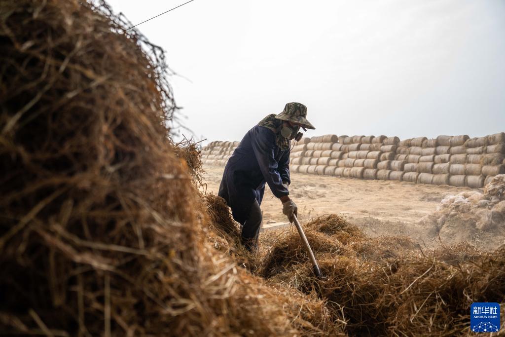 近日,在湖南省益陽(yáng)市南縣武圣宮鎮沿河堤村的稻草飼料化項目現場(chǎng),工人們忙著(zhù)將成捆秸稈進(jìn)行打散篩選,送入飼料化生產(chǎn)線(xiàn)。秸稈經(jīng)過(guò)切碎、震蕩過(guò)篩、風(fēng)選除塵、壓縮打包等工序后,即可成為牛羊飼草。據悉,該基地每年秸稈離田收儲能力可達1萬(wàn)噸、年飼料化加工能力8000噸,每噸毛利潤約400元。