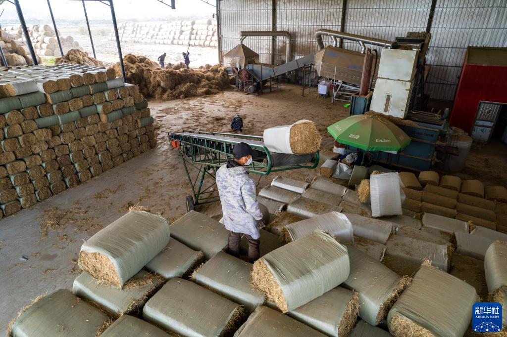 近日,在湖南省益陽(yáng)市南縣武圣宮鎮沿河堤村的稻草飼料化項目現場(chǎng),工人們忙著(zhù)將成捆秸稈進(jìn)行打散篩選,送入飼料化生產(chǎn)線(xiàn)。秸稈經(jīng)過(guò)切碎、震蕩過(guò)篩、風(fēng)選除塵、壓縮打包等工序后,即可成為牛羊飼草。據悉,該基地每年秸稈離田收儲能力可達1萬(wàn)噸、年飼料化加工能力8000噸,每噸毛利潤約400元。