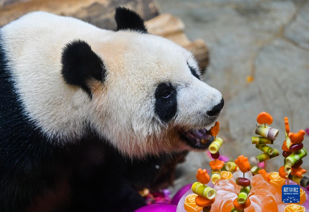 當日,為慶祝大熊貓“貢貢”和“舜舜”來(lái)到海南五周年,位于??诘暮D蠠釒б吧鷦?dòng)植物園為這對“熊貓兄弟”準備了玩具和竹筍、水果等美食,同時(shí)舉辦多種科普活動(dòng)和互動(dòng)游戲,吸引不少游客參加。