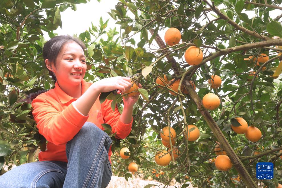 11月24日,寧德市住房和城鄉建設局干部林小渟在古田縣黃田鎮金翼村幫助村民采摘臍橙。