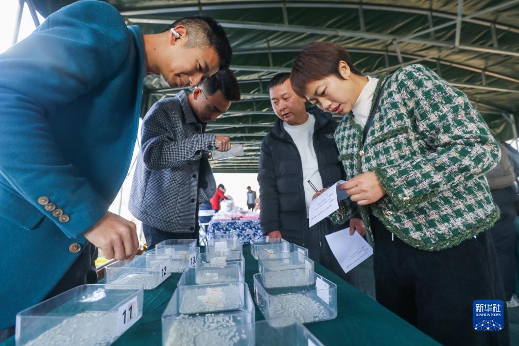 11月25日,在杭州市臨安區郎家村,評委在金獎大米評選環(huán)節為報名參賽的糧食生產(chǎn)基地打分。