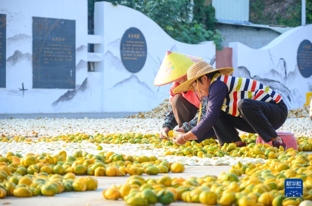 連日來(lái),廣東省江門(mén)市天氣晴好,新會(huì )區果農把握有利時(shí)機,抓緊晾曬柑果果皮。新會(huì )柑經(jīng)開(kāi)皮、曬制、陳化等程序后可制成新會(huì )陳皮。