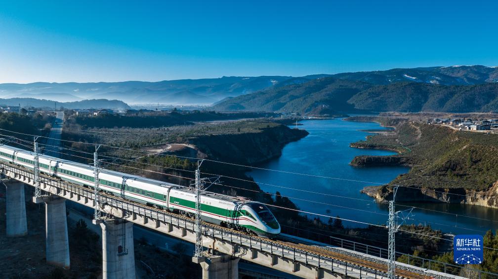 11月26日,列車(chē)行駛在麗香鐵路線(xiàn)上(無(wú)人機照片)。