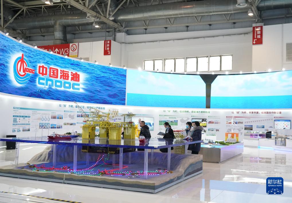 11月26日在中國國際供應鏈促進(jìn)博覽會(huì )清潔能源鏈展區拍攝的中國海油展位。