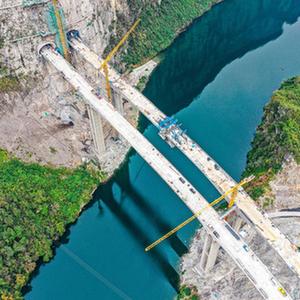 阿蓬江大橋位于武陵山區腹地的重慶市酉陽(yáng)土家族苗族自治縣龔灘鎮境內,大橋橫跨阿蓬江,橋梁全長(cháng)515米,最大墩高67米。據介紹,項目難點(diǎn)在于橋與崖壁相連,崖壁高度近190米,大橋臨崖最大坡度近90度,橋梁部分深入崖壁形成“隧中橋”。