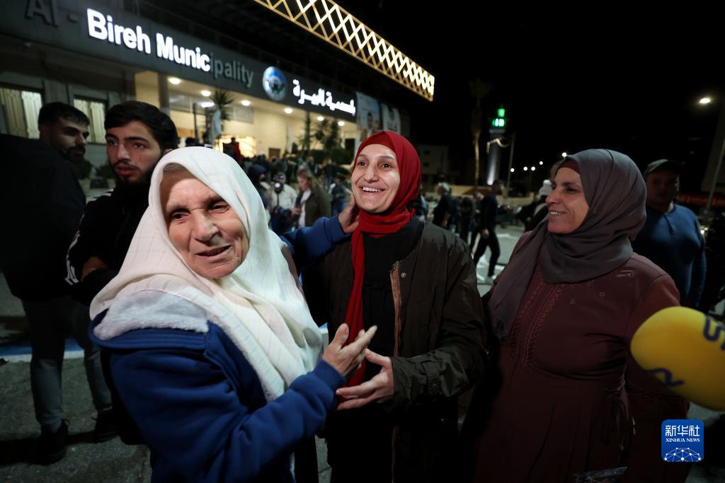 11月26日,在約旦河西岸城市比拉,獲釋巴勒斯坦被關(guān)押人員與親人團聚。