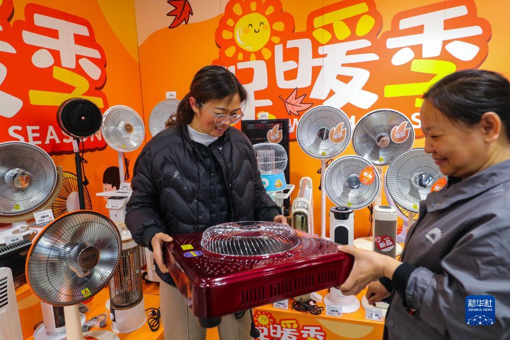 11月26日,市民在河南省信陽(yáng)市光山縣一家超市選購取暖器。