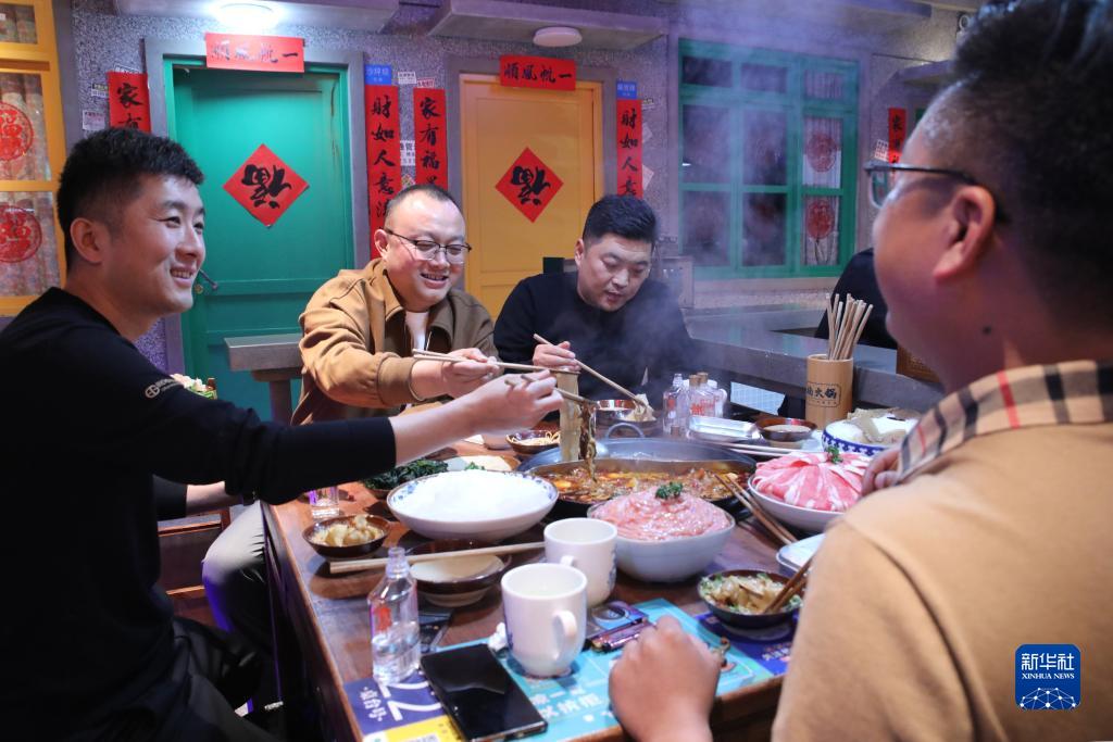 11月25日,市民在河南省開(kāi)封市尉氏縣一家火鍋店就餐。