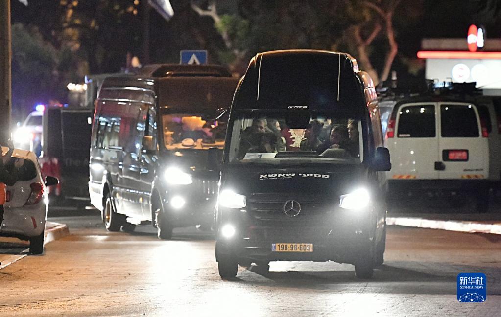 11月26日,載有哈馬斯釋放的第二批被扣押人員的車(chē)輛抵達以色列拉馬特甘的一所醫院。