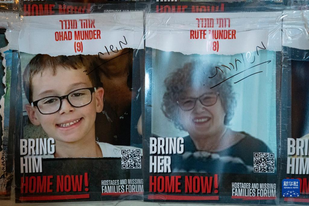 這是11月27日在耶路撒冷拍攝的被扣押人員海報,其中獲釋人員的海報上用希伯來(lái)語(yǔ)標注“已被釋放”。