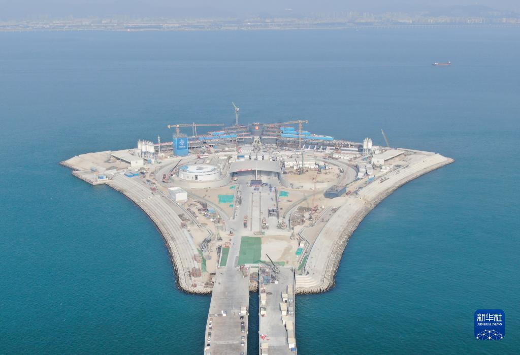 這是深中通道西人工島,形似巨大的風(fēng)箏(11月27日攝,無(wú)人機照片)。