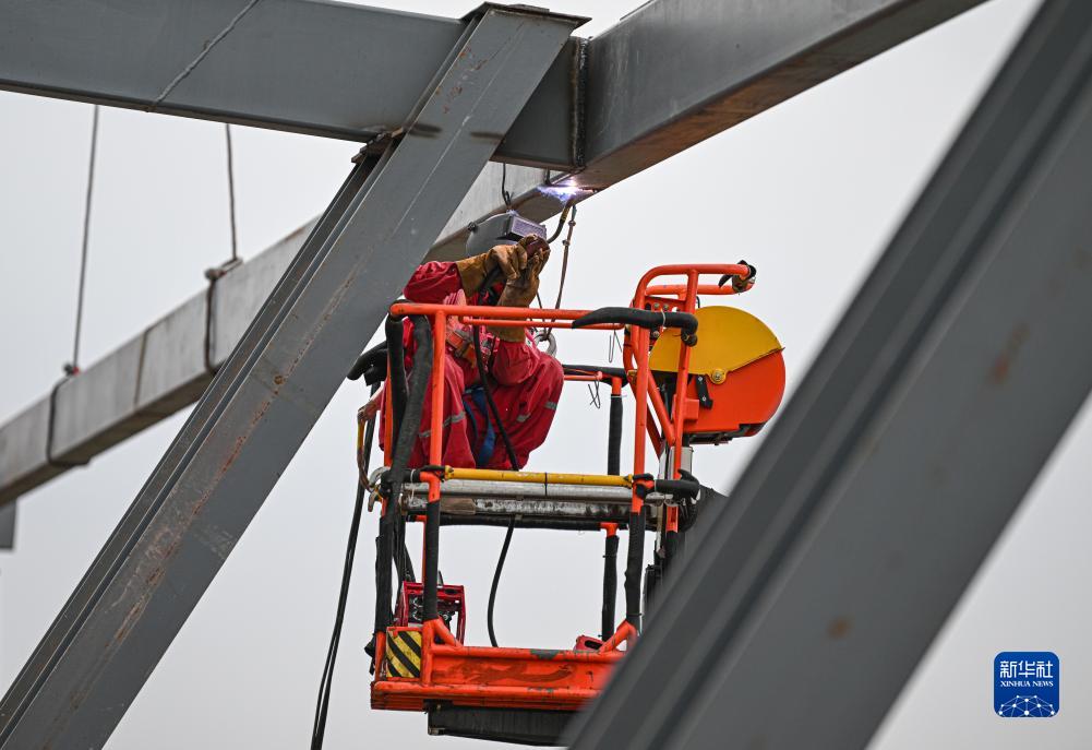 11月25日,工人在位于海南省儋州市的“火山海岸”驛站工地施工。