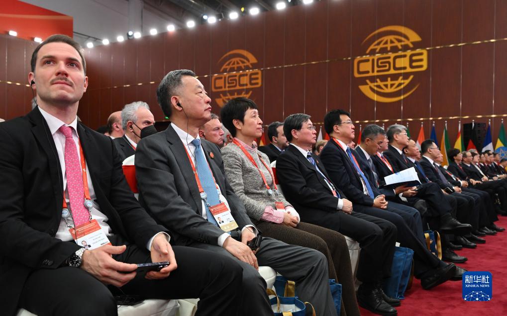 11月28日,中外與會(huì )嘉賓在博覽會(huì )開(kāi)幕式現場(chǎng)聆聽(tīng)主旨演講。