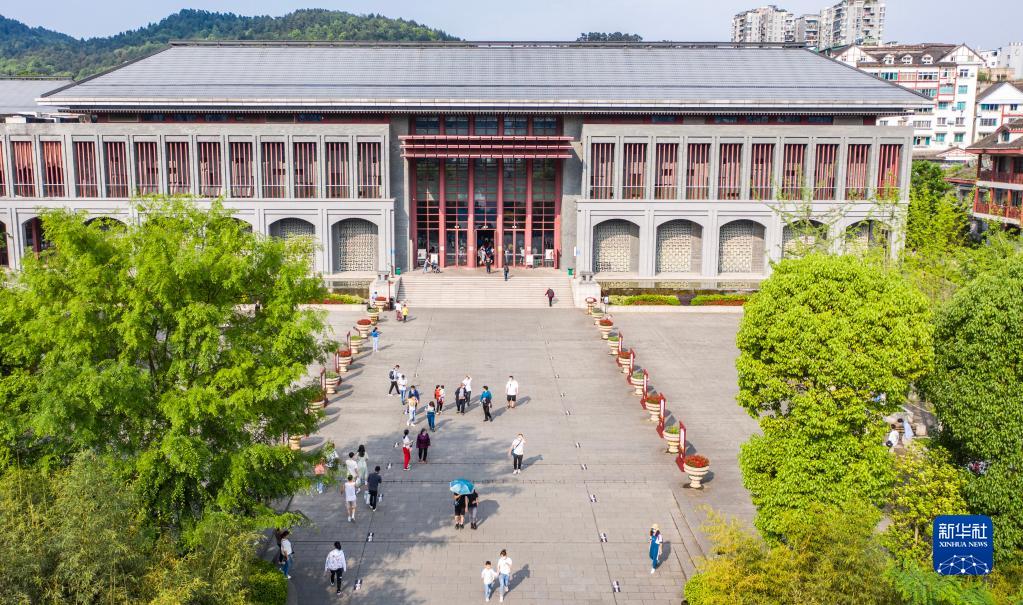 游客在遵義會(huì )議紀念館參觀(guān)(5月3日攝,無(wú)人機照片)。新華社記者 陶亮 攝