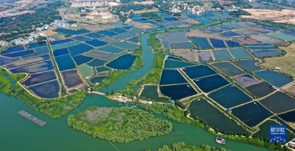 這是廣西欽州市欽南區沙埠鎮船埠環(huán)村的冬日蝦塘景色(11月25日攝,無(wú)人機照片)。新華社記者 張愛(ài)林 攝