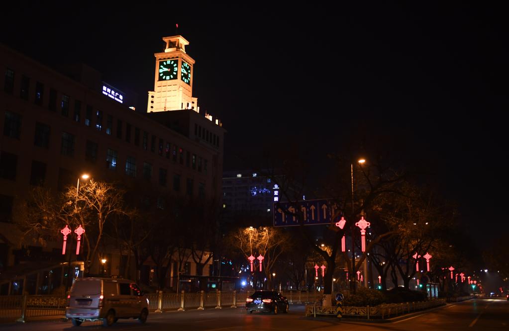 2021年12月31日,夜色下的西安報話(huà)大樓塔鐘。新華社記者 李一博 攝