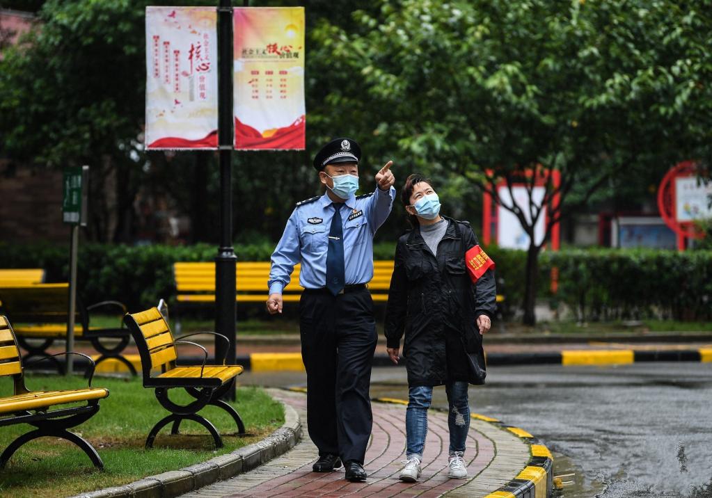 胡永鵬和社區工作人員在轄區內巡查。(武漢市公安局青山區分局提供)