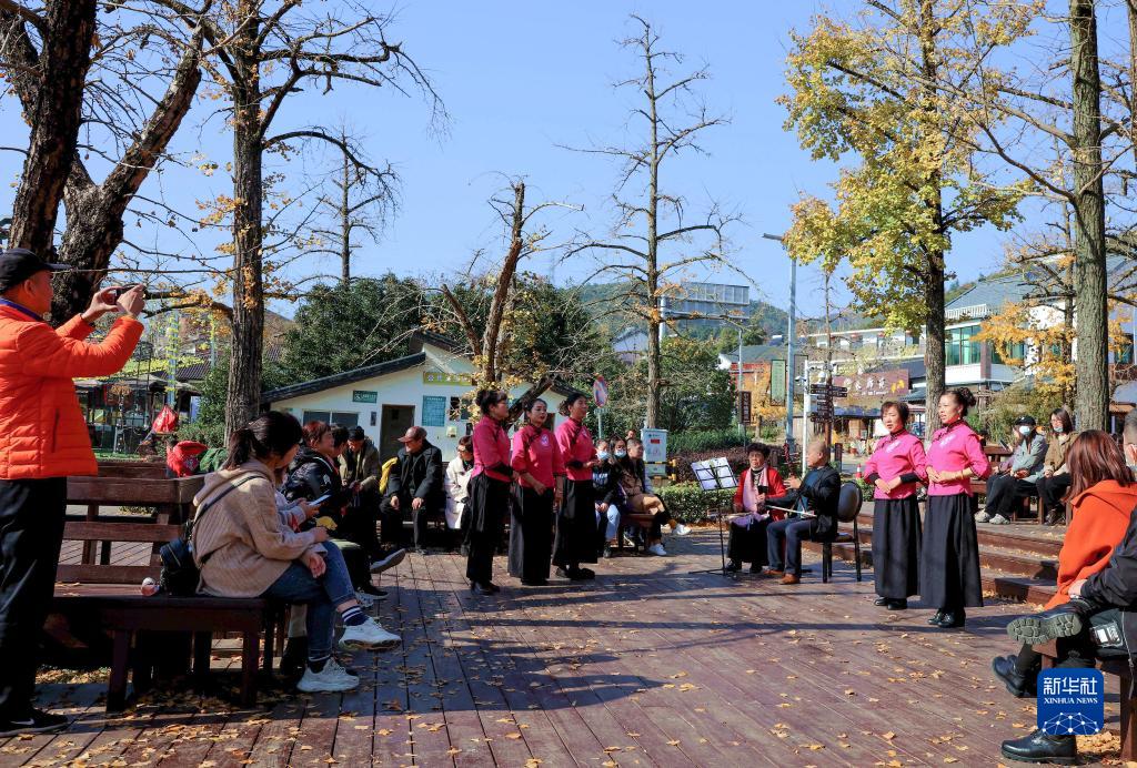 2021年11月25日,在浙江省湖州市長(cháng)興縣小浦鎮方一村,戲曲愛(ài)好者將六中全會(huì )精神融入戲曲,自編自導自演地方特色灘簧戲。新華社記者 徐昱 攝