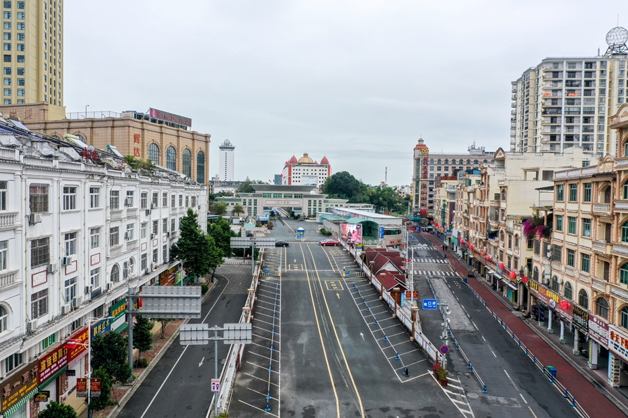 ↑這是疫情發(fā)生后的東興口岸及附近商業(yè)街(2021年12月28日攝)。