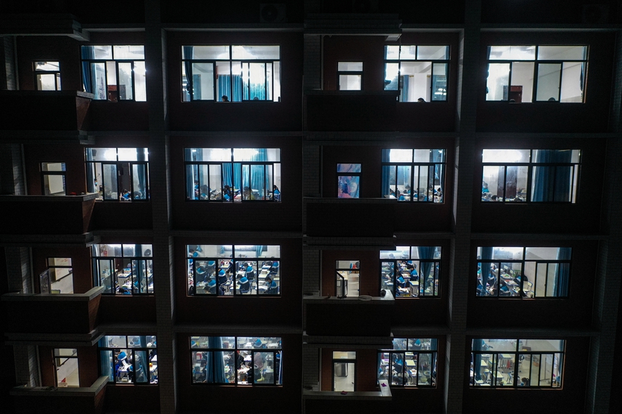 ↑1月5日晚,東興中學(xué)高三學(xué)生在上晚自習。