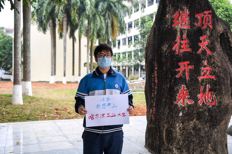 “我今年想順利考上哈爾濱工業(yè)大學(xué),以后當一名飛行器設計師,這是我從初中時(shí)就立下的志愿?!?/p>