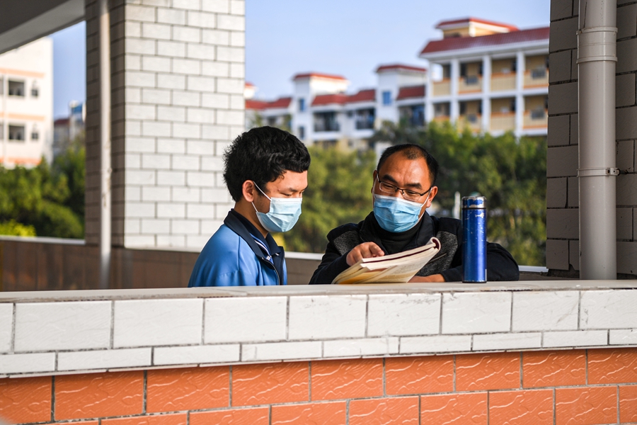 ↑1月5日,東興中學(xué)老師在給學(xué)生答疑。