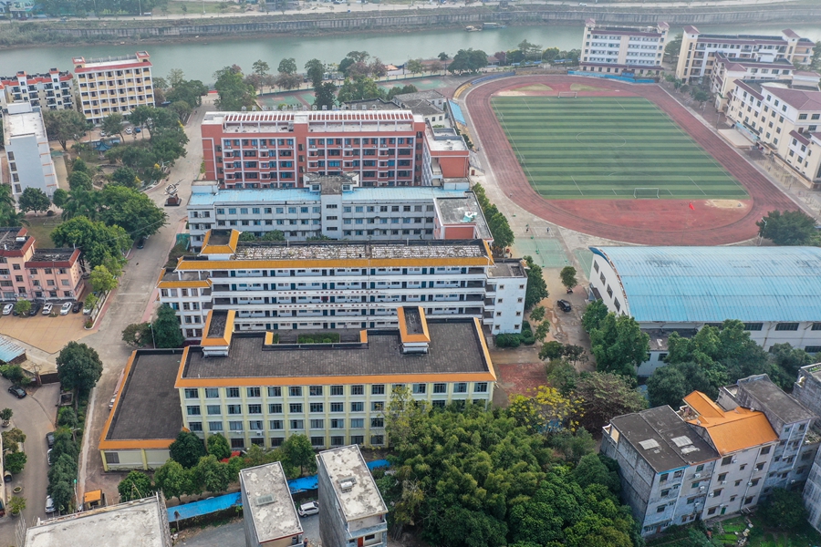 ↑這是坐落在北侖河畔的東興中學(xué)(1月5日攝)。
