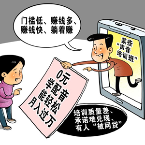 新華社記者發(fā)現,有些商家乘機在網(wǎng)絡(luò )平臺推銷(xiāo)各類(lèi)“聲音培訓班”。有些培訓班大多先以“免費專(zhuān)業(yè)聲音培訓”“幫聯(lián)系高收入兼職”等承諾招攬學(xué)員,但學(xué)員們在高價(jià)購買(mǎi)課程后,并未能實(shí)現廣告所稱(chēng)“輕松月入過(guò)萬(wàn)”“培訓完保障就業(yè)”,有的甚至還背上網(wǎng)貸。