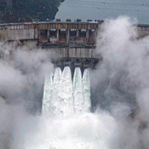 這是2021年7月1日拍攝的投產(chǎn)發(fā)電中的白鶴灘水電站。新華社記者 江文耀 攝