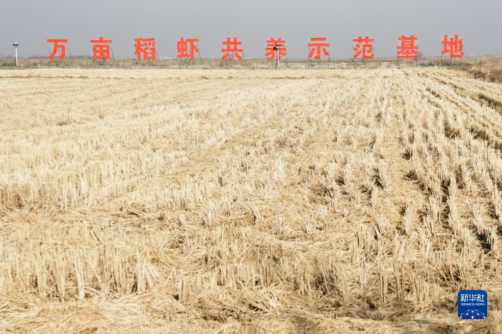 這是山東省濰坊市寒亭區海水稻種植基地稻蝦共養示范基地(2021年12月2日攝)。新華社記者 朱崢 攝