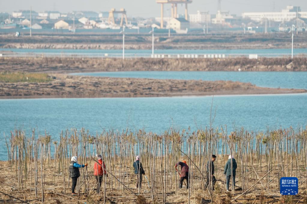 村民們在山東壽光羊口港種植樹(shù)木(2021年12月2日攝)。新華社記者 朱崢 攝