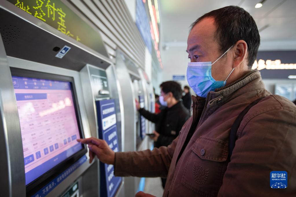 1月3日,旅客在南京火車(chē)站通過(guò)自助售票機購買(mǎi)火車(chē)票。當日,鐵路部門(mén)開(kāi)始發(fā)售2022年春運火車(chē)票。新華社發(fā)(蘇陽(yáng) 攝)